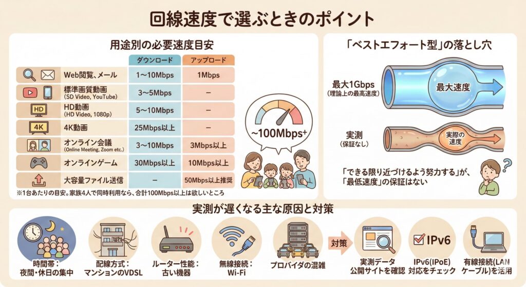 - 利用目的と必要速度を明確化 → 用途別の推奨速度を参考に