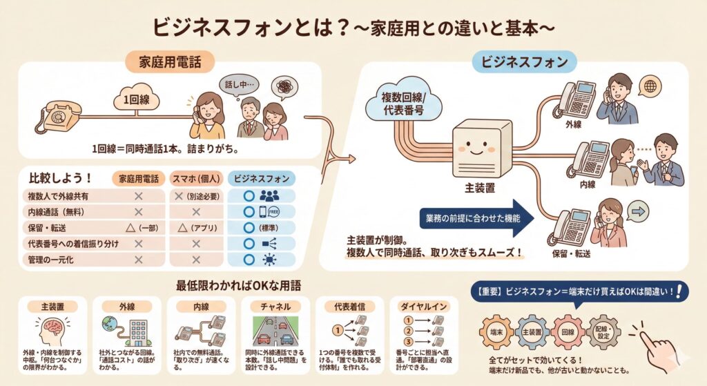 これがビジネスフォンと家庭用電話の本質的な違いです。