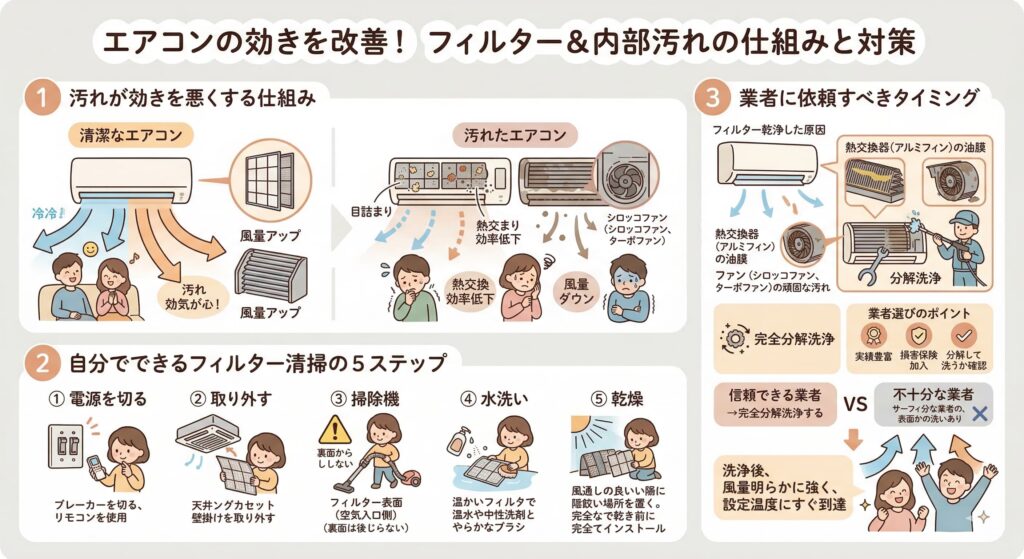 フィルター・室内機の汚れが原因で効きが悪くなる仕組みと掃除手順